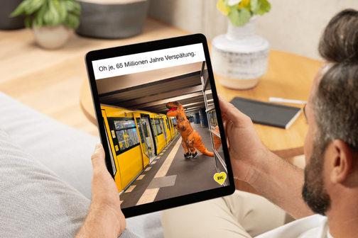 Bei der Sonderausstellung "Dinoworld" im Tierpark Berlin konnten realistische Dinonachbildungen bestaunt werden. Wenn, ja wenn sich ein Exemplar nicht aus dem Staub und die Stadt unsicher gemacht hätte. Am 1. April wurde das Dino-Gesuch in der ganzen Stadt plakatiert, in den sozialen Netzwerken begleitet und so die Werbetrommel für die Dinoworld Berlin gerührt. Und sogar die Social-Media-Profis der BVG haben das Thema aufgegriffen ... 😍