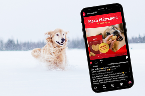 Social-Ad für Trockenfutter-Hundekeks-Zubereitung von mera petfood im Auftrag von Kochstrasse – Agentur für Marken