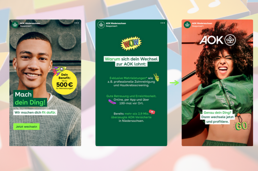 Social Media Content für die Berufsstarter-Wechsel-Kampagne "Mach dein Ding" der AOK Niedersachsen im Auftrag von Kochstrasse – Agentur für Marken